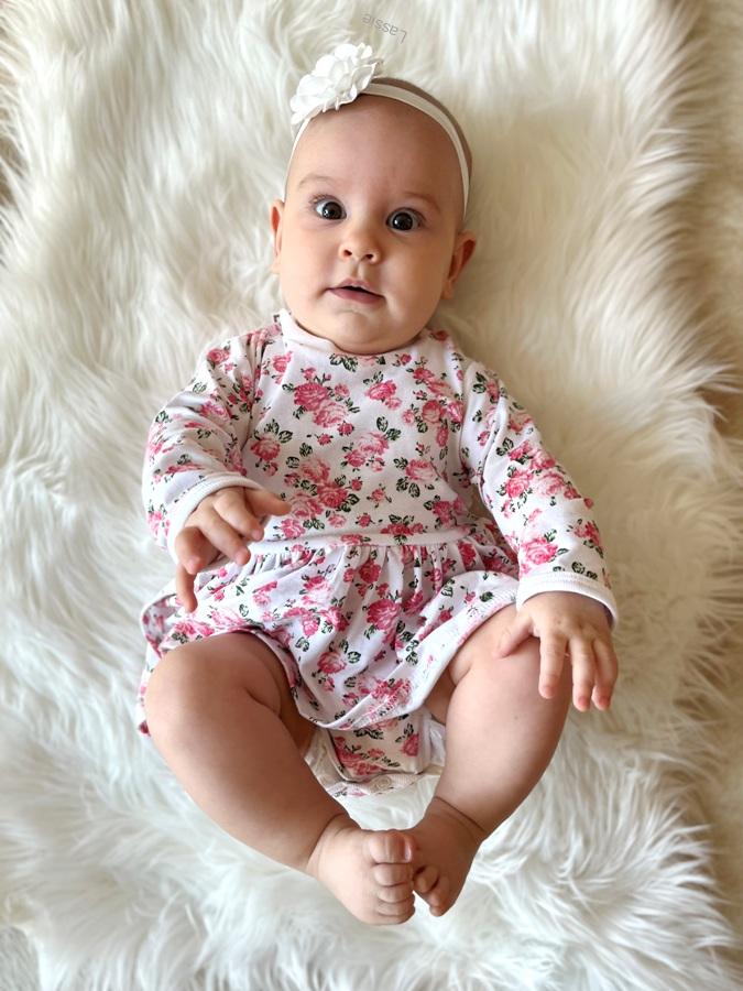 Štýlové, romantické bavlnené šatôčky-body s dlhým rukávom pre najmenšie princezné. Sú ušité na štýl body a sú neodmysliteľnou súčasťou dievčenského šatníka. Zapínanie na cvočky na ramienku a medzi nožičkami uľahčí obliekanie a prebaľovanie.