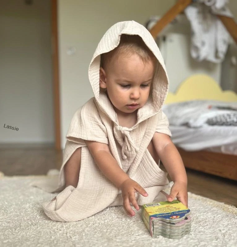 Zabaľte vášho drobca do obláčiku lásky! Rozmaznávajte detskú pokožku mäkkučkým a hebučkým mušelínovým pončom hneď po kúpaní. Kapucňa udrží hlavičku v teple a vďaka otvorom na ruky nebude dieťa nijako obmedzované v pohybe.